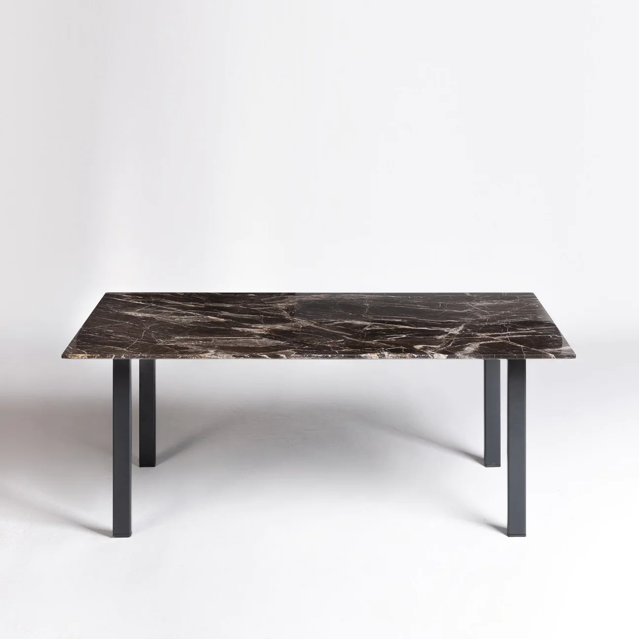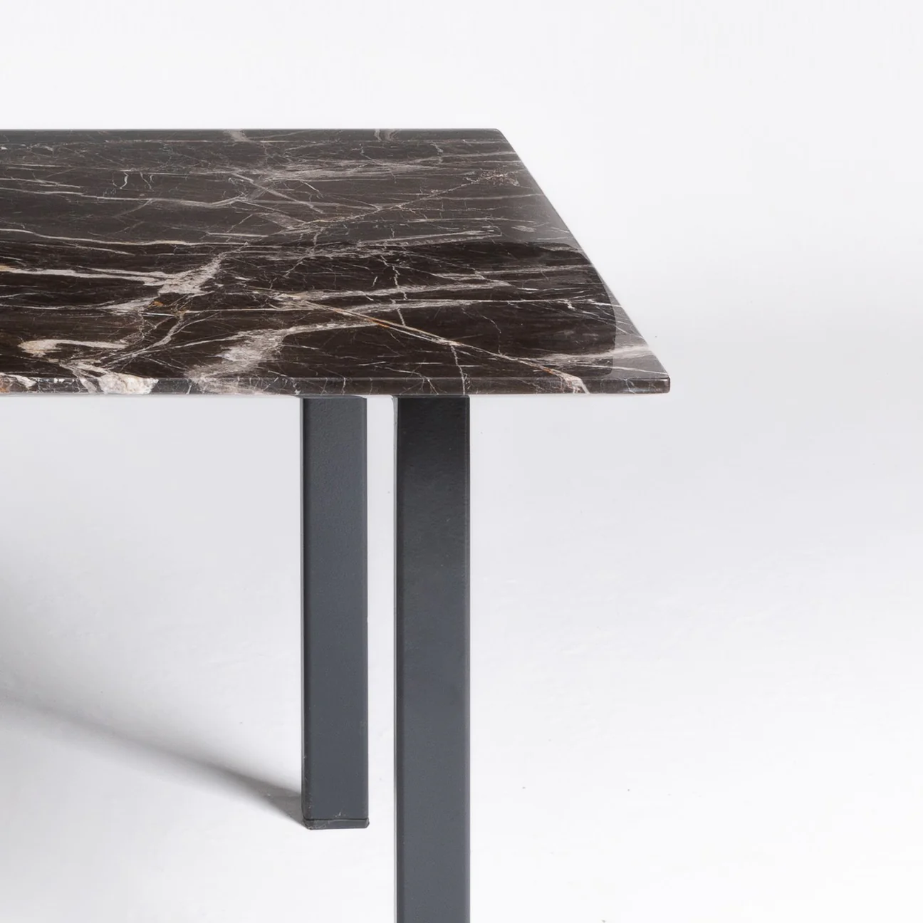 Tavolo con top in marmo e base in metallo. Interamente lavorato a mano.