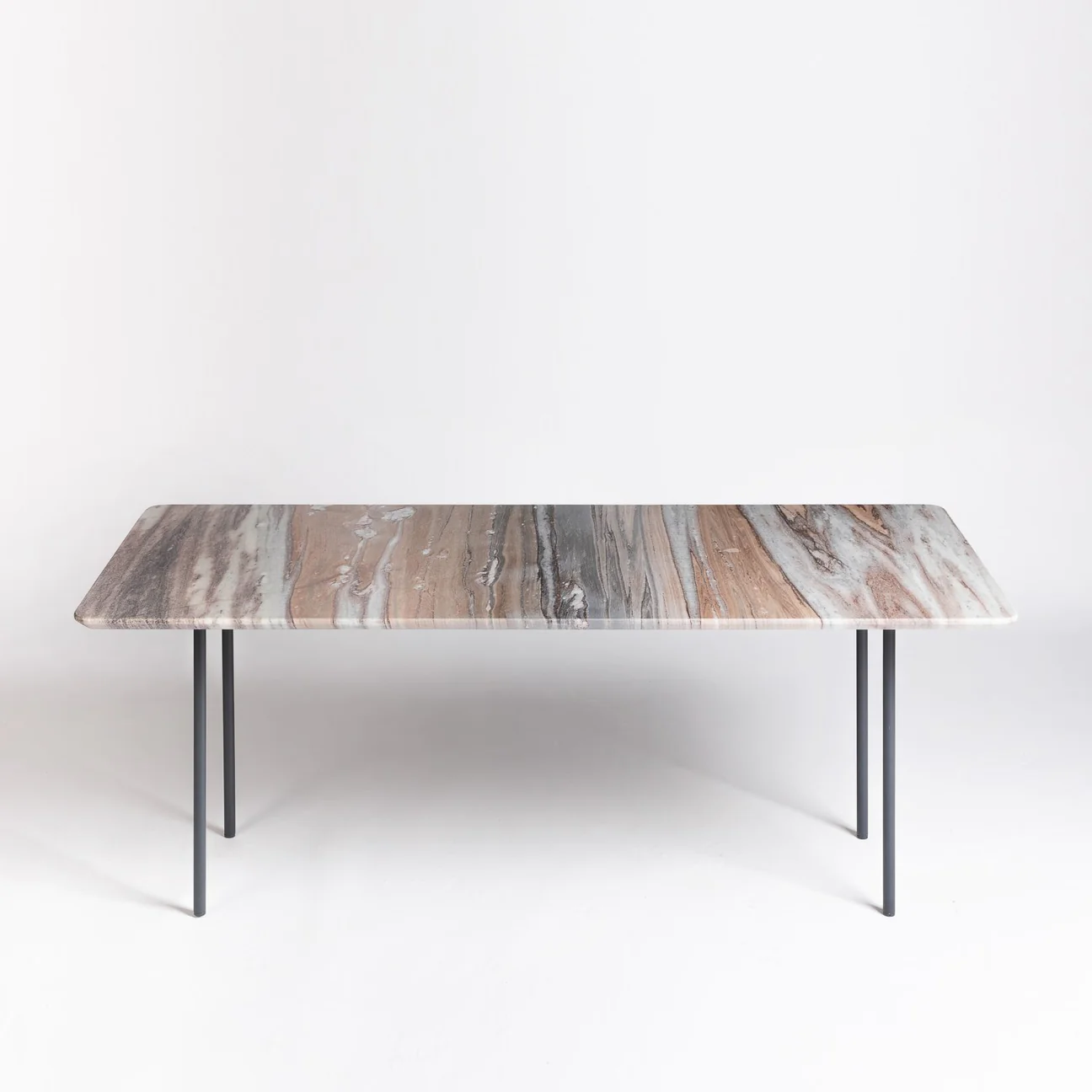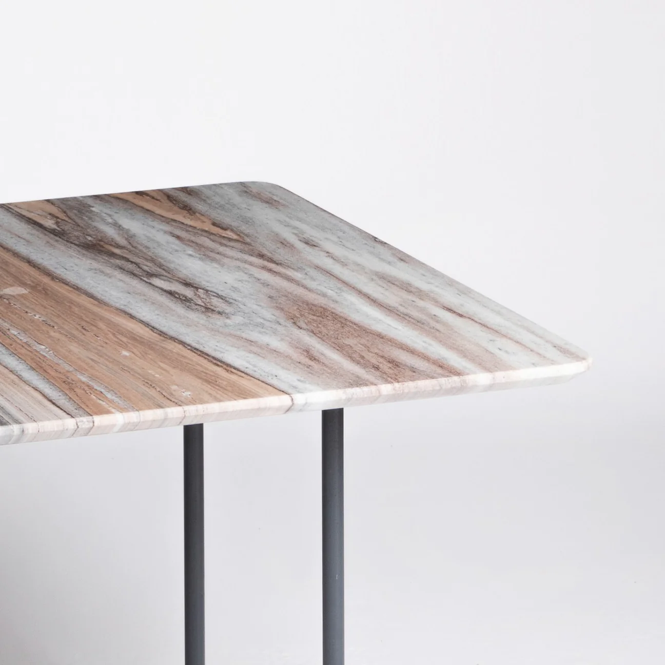 Tavolo con top in marmo e base in metallo. Interamente lavorato a mano.